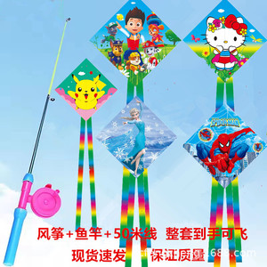 ひし形の釣り竿と凧の卸売りの三角のプラスチックの釣り竿と凧の子供は釣り竿と凧を持って屋台を並べて卸売りします。