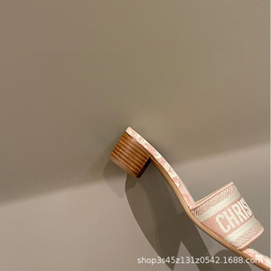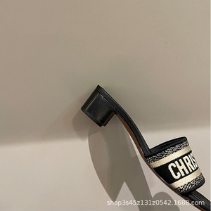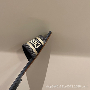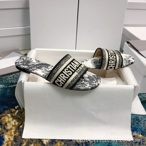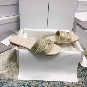 女性が外で履くためのハイバージョンDファミリービーチサンダル2025夏新作大きいサイズフラットシューズ文字刺繍太ヒールスリッパ