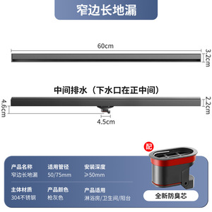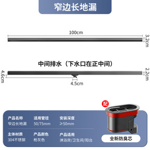 厚みのあるステンレス鋼の床排水管アメリカンスタイルの非常に狭いラインタイプの大排気量浴室消臭ロング床排水管工場卸売