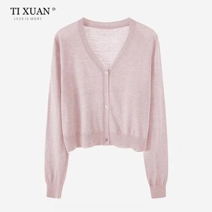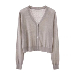 2025 夏梳毛スーパーファインウールレディース長袖カーディガンクラシックベーシックスーパーショート V ネックトップ 6002
