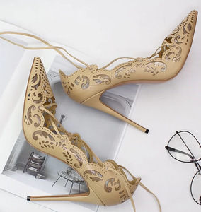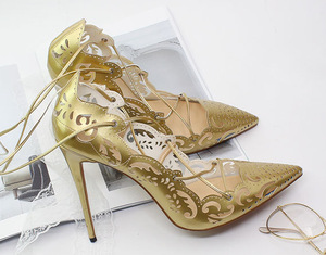 国境を越えた独立駅insファッションショーの透かし模様の浅い口のひもの細いハイヒールの外国貿易の靴