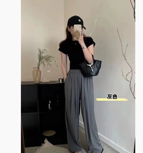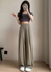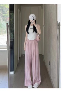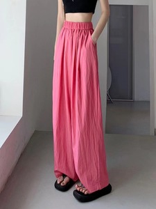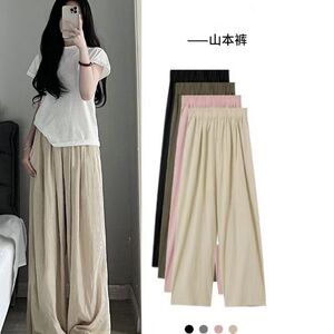 日本式の怠惰な風の山本のズボンの春の夏の薄いタイプの高い腰の垂れ下がっている感じの百合のゆったりしているまっすぐな筒の氷の糸の広い足のズボンの女性