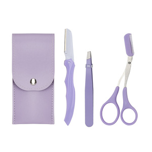 65204紫皮包眉修理三点セット (96斜め + 櫛切り + 折り畳み眉修理刀)