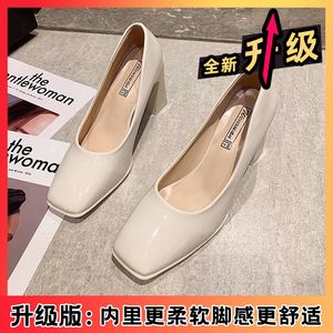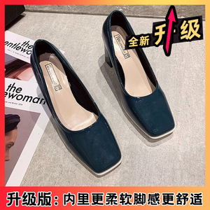 2025年春秋向け レディース ハイヒール シングルシューズ ミドルヒール ヴィンテージ スクエアトゥ 太ヒール フレンチ風 ソフトレザー ママシューズ レトロスタイル