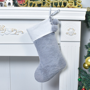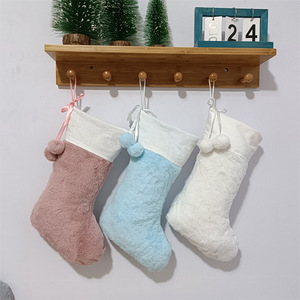 クロスボーダー大型ぬいぐるみクリスマスソックスパーティーフェスティバルデコレーション収納ギフトバッグ、ファーボール付き無地クリスマスソックス