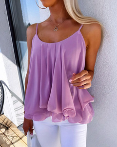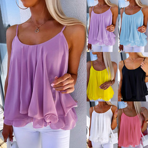 AliExpress 2025 夏の新ヨーロッパとアメリカのクロスボーダーカジュアルファッションスリングルーズ女性のシフォン小さなベストトップ