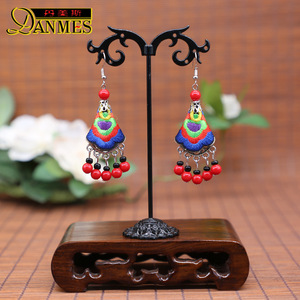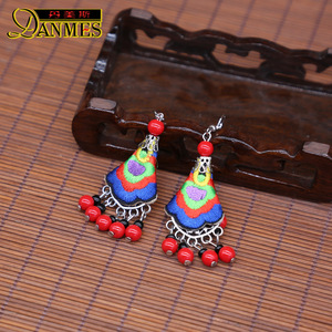 上新雲南民族風カラー布芸刺繍女性イヤリングレトロ民族衣装アクセサリーイヤリング