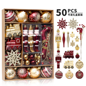 クリスマス装飾品50pcs酒紅金彩色クリスマスボールセット飾りクリスマスツリー装飾ストラップ