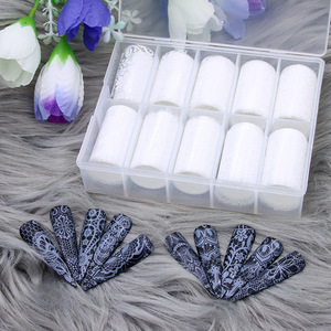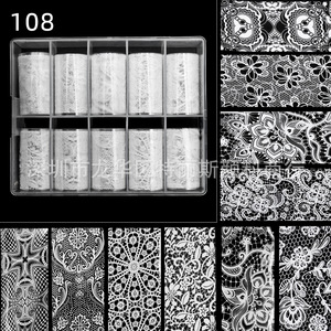 クロスボーダーネイルステッカー星空和風ボックス入り転写紙白黒レースフラワー混合転写ステッカー韓国ステッカー