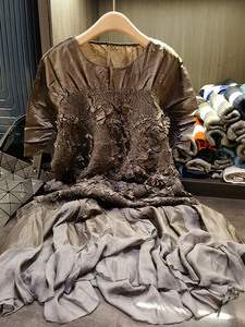 高級感のある刺繍とエンボス加工のプリーツワンピース、半袖、ゆったりとした大きいサイズ、ミディアム丈の女性用サマードレス、新作