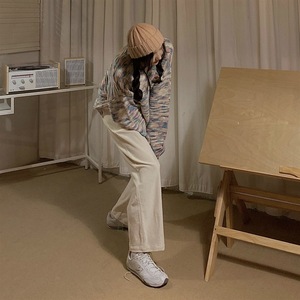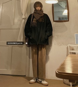 高腰の広い足のコーデュロイのズボンの子供2023秋冬の新型のゆったりしたストレートのカジュアルな感じの学生のカジュアルなズボン