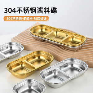 304ステンレス調味料皿家庭用醤油酢小皿分格付皿ホテルレストラン火鍋店軽食皿
