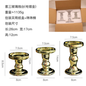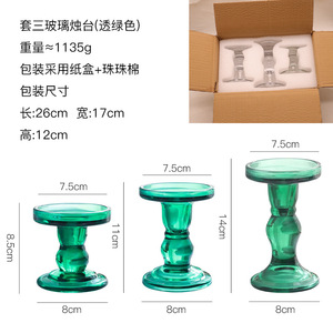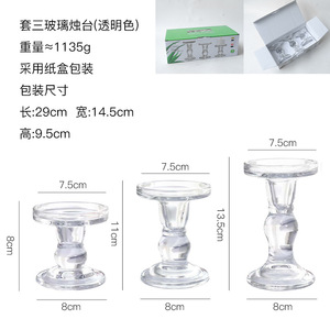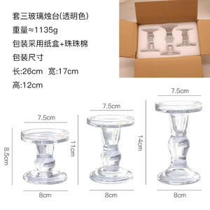 カラーボックスセット3つのガラスの燭台 (透明色)