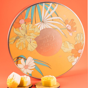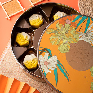 新デザインステッカー付き月餅用鉄箱、中秋節用丸型金属製ギフトボックス、丸型ブリキ缶包装箱