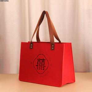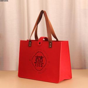 結婚喜の字のフェルトの手提げ袋の大きいサイズの贈り物の袋の結婚の包みのお土産の喜糖は赤い包みを詰めます。