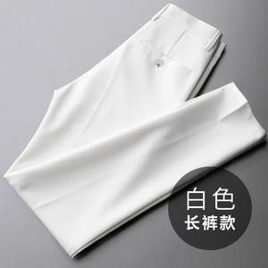夏の薄いタイプの垂れ下がった感の9分の白いズボンの男性の修身の潮流の小さい足のまっすぐな筒のズボンのビジネスのズボンのカジュアルなズボン