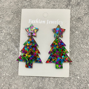 国境を越えたクリスマスツリーのイヤリングが輝いているアクリルがファッション的なイヤリングをつなぎ合わせて欧米の祝日insが流行しているアクセサリーの新製品