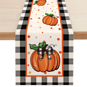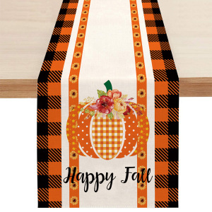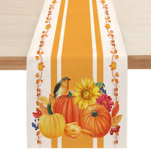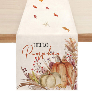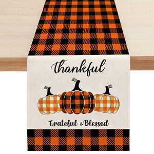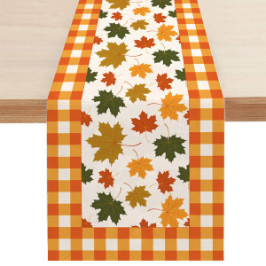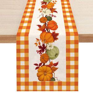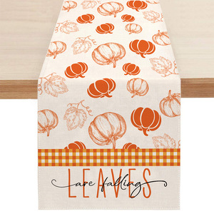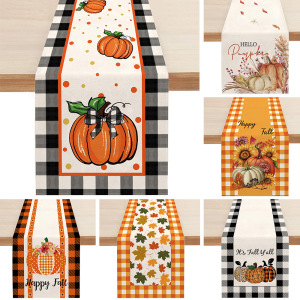 国境を越えた新しい感謝祭テーブル旗秋カボチャ紅葉プリントテーブル旗家庭装飾テーブル茶テーブルテーブルクロス