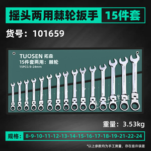 101659、袋入り両用ラチェット15セット-首振り金、3.53kg