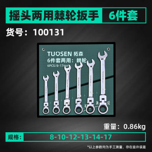 100131、袋入り両用ラチェット6セット-首振り金、0.86kg