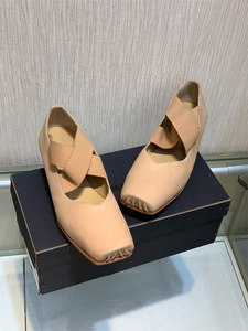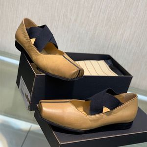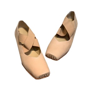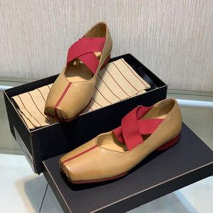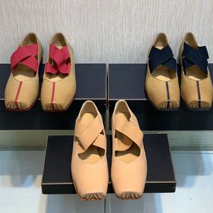 オリジナルのトップ版! フランスの小衆の本革の手作りのバレエ靴の角頭のブタの鼻の交差は浅い口のメアリーの珍の靴を持ちます。