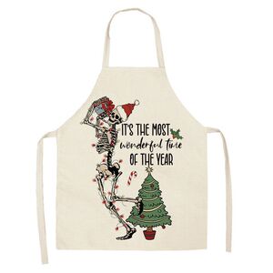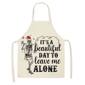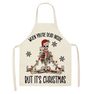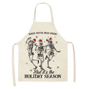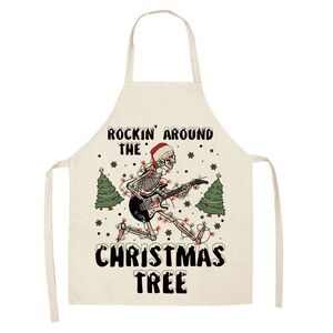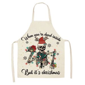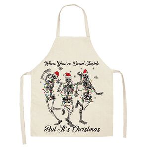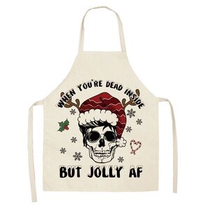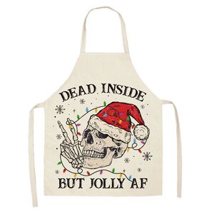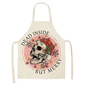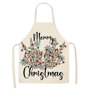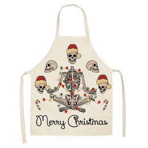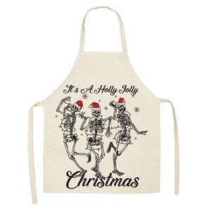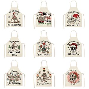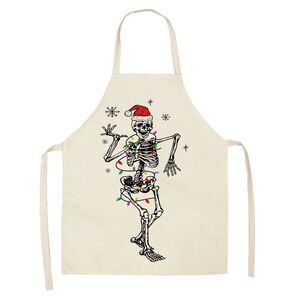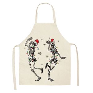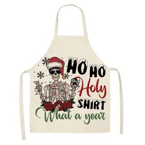 クリスマスエプロンクロスボーダー人気スカルシリーズプリントリネンノースリーブエプロン祝日装飾キッチン防汚エプロン