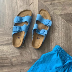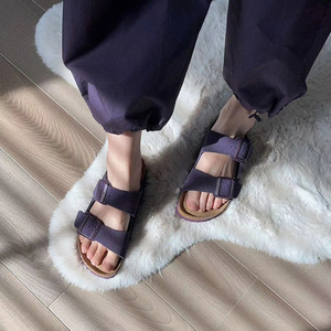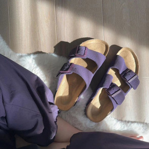 【在庫あり】パープル本革ビルケンシュトックシューズ夏新作ワンラインバックルレディースフロストフラットソールビーチサンダル