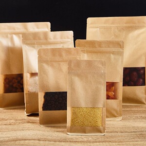 クラフト紙開窓八辺封自立袋雑穀製品自封袋厚密封袋ナッツ食品包装袋