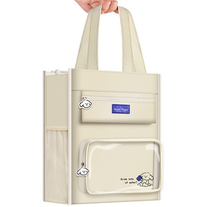 カバ熊キャンバスバッグ女子補習バッグ高校生中学生が本の袋を持っています。