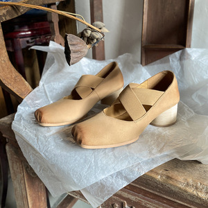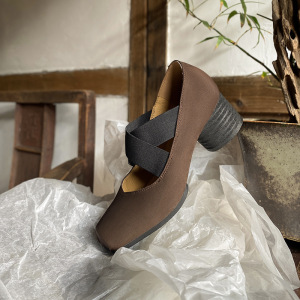 2023年春秋復古風真皮浅口靴婦人靴中ヒールダンス靴弾性バンドバレエ靴