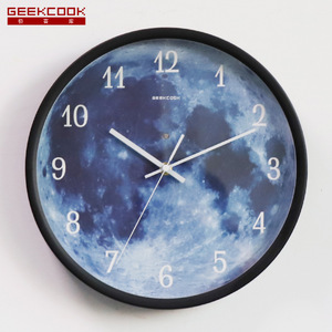 Geekクックアマゾンの人気爆発時計: 星河一粟ブルー月led夜光音控掛け時計