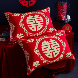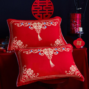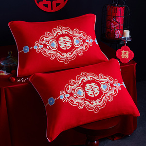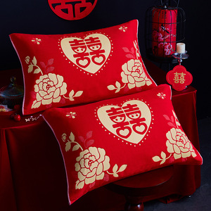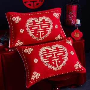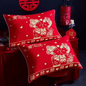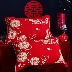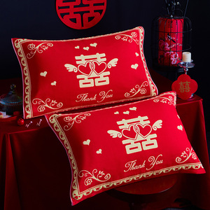 新婚喜字中国式四段綿ガーゼ結婚祝い枕巾赤高級厚厚厚綿結婚部屋装飾枕巾