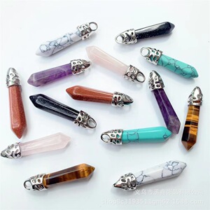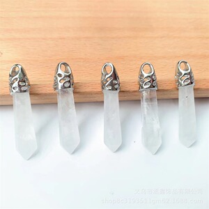 热い贩売合金六角柱弾性ヘッド単一の尖ったペンダント天然石クリスタル紫晶粉晶ネックレスアクセサリー卸売