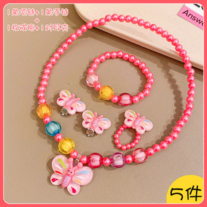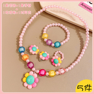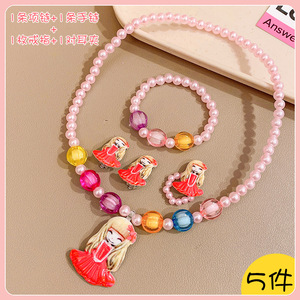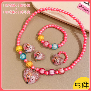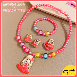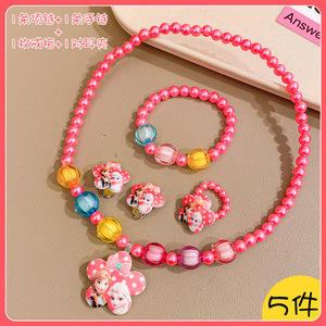 子供のネックレスのかわいいアニメのアクセサリーのセットの女の子のビーズのブレスレットの指輪の女の子は学生のアクセサリーの女性を飾ります。