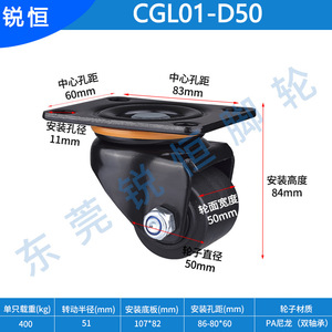 2インチ低重心キャスターCGL01-D50荷重400キロ車輪CGL02-D50ブレーキ重万能車輪