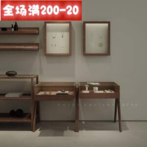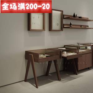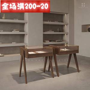 レトロ風アクセサリーガラス展示棚原木色置物カウンター腕時計メガネ中島棚ジュエリーコレクション陳列