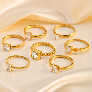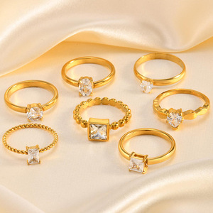 シンプルなチタン鋼指輪白黒ジルコン楕円水滴開口部調節可能な女性ステンレス製アクセサリー卸売り