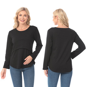 春秋ファッションゆるいアーチデザイン授乳服外出辛いママ妊婦長袖tシャツ授乳大きいサイズ妊婦服