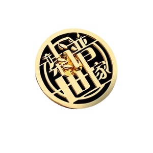 24K金メッキブローチカスタム龍年透かしバッジ金属工牌胸牌高級金色文字彫刻