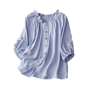 実際に高級な筋肉を撮影して肌のシャツの上着の女性の夏の薄いタイプの肉を遮ってやせている文芸の気質のハスの葉の辺の小さいシャツを現します。