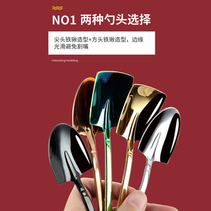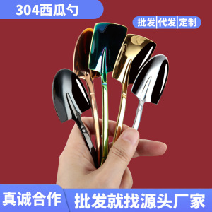 ピュア304】ステンレススイカスプーン、高見えクリエイティブ厚みのあるエンジニアシャベル、デザートゴールデンスクエアヘッドシャベルスプーン