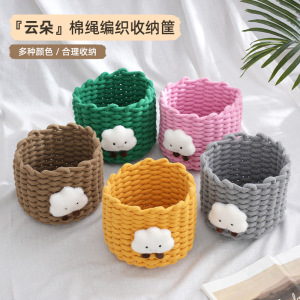 雲編み収納バスケット綿紐収納バスケットデスクトップ化粧品整理ボックスクリエイティブ多機能かわいい漫画収納