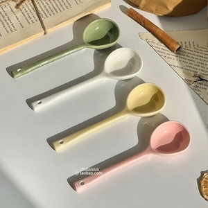 Ins風手つまみ不規則日本式陶磁器スプーン高颜値家庭用スープ長柄しゃもじナット粉スプーン