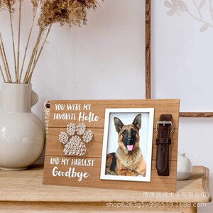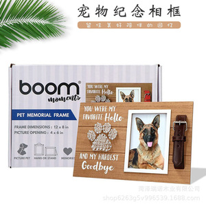 木製フォトフレームペット記念置物越境犬木製首輪枠創意成長記録置物