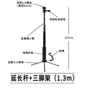 130cm延長ポール+小型金属三脚+携帯電話クリップ