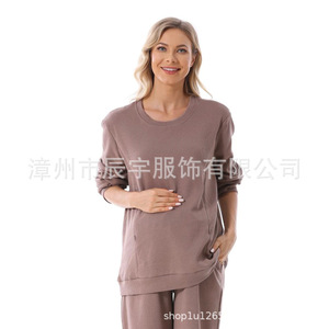 妊婦ファッション春秋服セットは2025気質の衛衣を着ています。