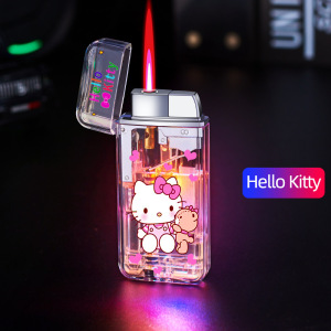 ZO8815-1新款LED彩灯卡通防风打火机 塑料可视气仓充气点烟器批发