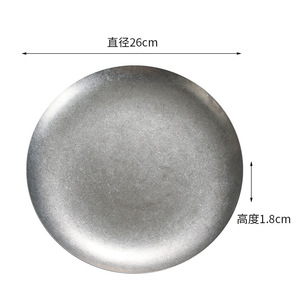 レトロデザートプレート工業風ステンレスプレートカフェケーキ皿アメリカ料理プレート小円盤浅皿