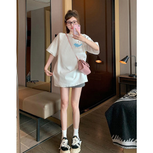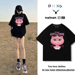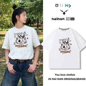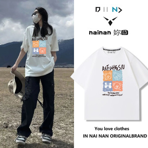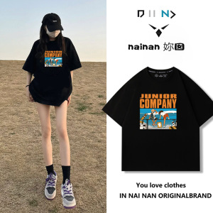 純綿半袖tシャツ女性夏韓国版新型ゆるい丸首小衆白色アニメプリント学生半袖tシャツ
