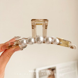 優雅な天井 ~ 気质の真珠のヘアピンの女性の后头のシンプルなクリップの大きいサイズの夏のサメのクリップの高级感